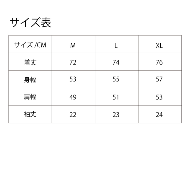 | サイズ/cm | 着丈 | 身幅 | 肩幅 | 袖丈 |